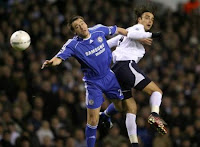 Unbelievably, Spurs went straight up the other end and struck woodwork, Defoe skipping through challenges from Lampard and Carvalho before rocketing a shot onto the bar.